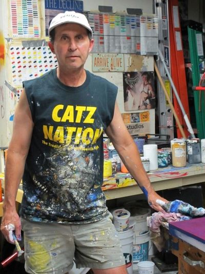 My approach is industrious and spontaneous, the paintings being engaged at ground level with quick, decisive movements. Acrylic, enamel and mixed media are used on canvas and wood.